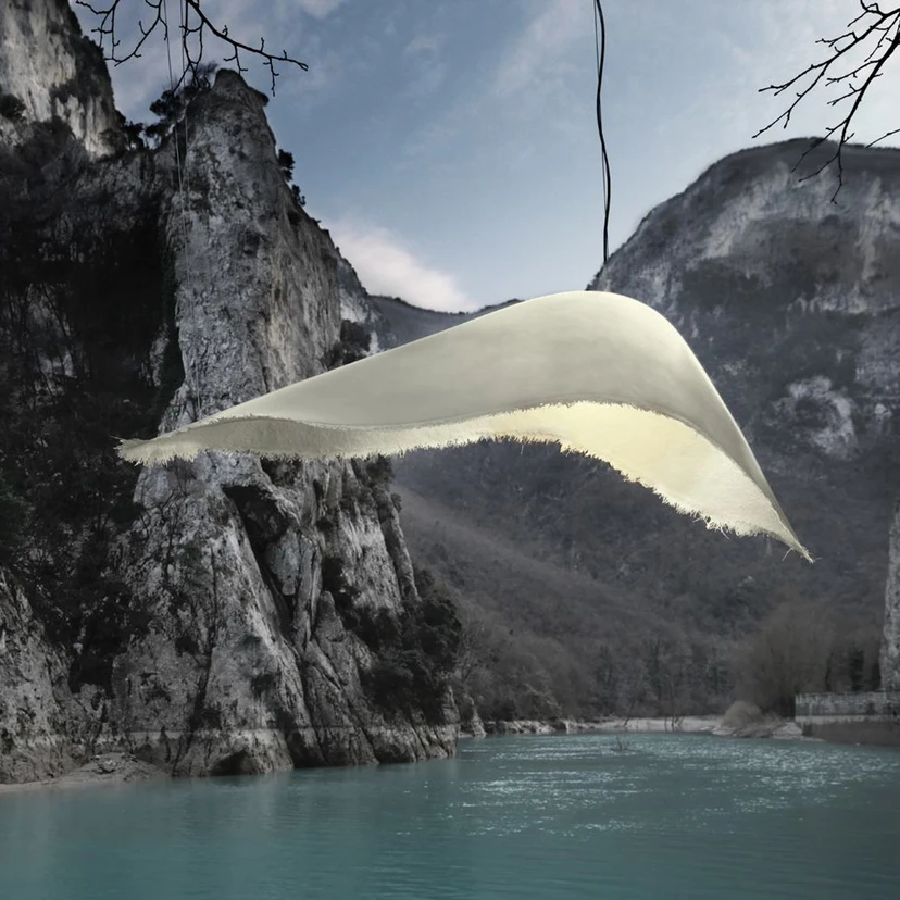 Design til udendørs brug - Moby Dick-pendlen med IP44 Den voluminøse skærm på den udendørs hængelampe Moby Dick er lavet af glasfiber og er flosset i kanterne, hvilket giver lyset noget uperfekt eller råt. Skærmen er ru på indersiden og glat på ydersiden. Det er ikke tilfældigt, at denne hængelampe med sin iøjnefaldende skærm hedder Moby Dick, da skærmens form faktisk minder lidt om en hval, der kommer op fra havets dyb. Kablet er grønt og dækket af neopren, hvilket gør lampen godt beskyttet til udendørs brug. Stålkablet giver ekstra stabilitet. Pendellampen leveres uden baldakin og tilsluttes strømforsyningen ved hjælp af et stik. Lyset fordeles hovedsageligt direkte nedad. Usædvanlige armaturdesigns er et kendetegn for den italienske armaturproducent Karman. Matteo Ugolini, designeren af Moby Dick, er art director og chefdesigner for armaturproducenten, som har base i Fossombrone i det centrale Italien. Karmans produkter er indbegrebet af italiensk design og håndværk. Fremstillet i Italien.
