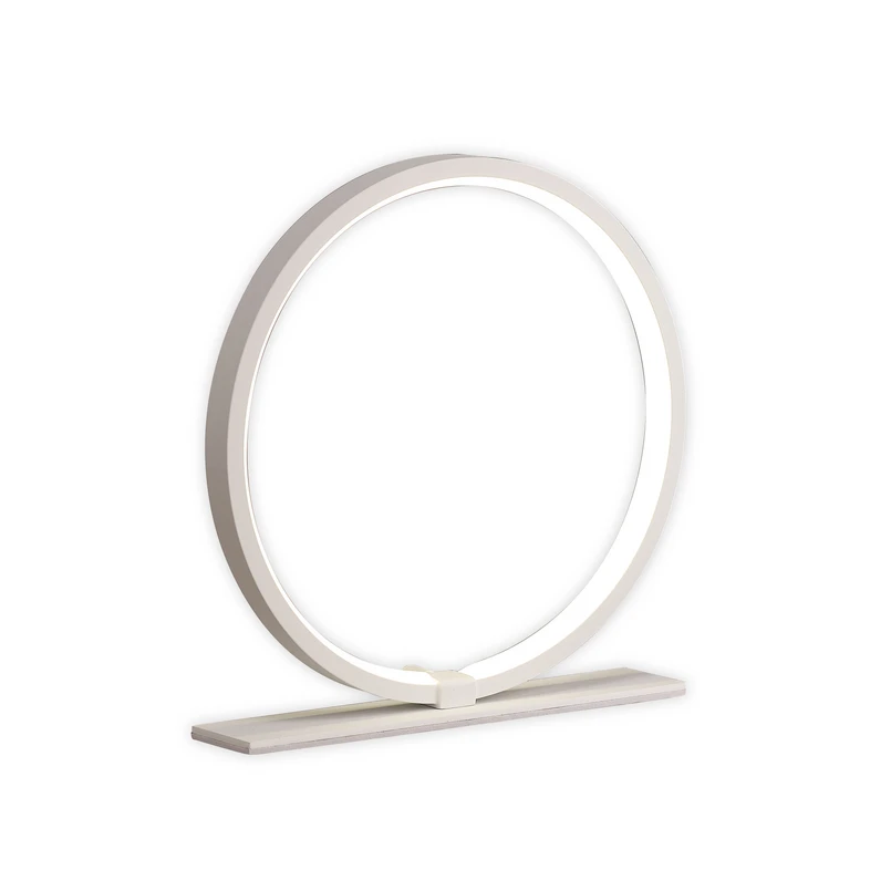 Kitesurf LED-bordlampe i ringform Skærmen på Kitesurf LED-bordlampen er udformet som en ring. Den er lavet af aluminium og er lukket på indersiden med et satineret silikonedæksel. Bag den er der installeret varmhvide LED'er, hvis lys spotlighter meget jævnt og uden synlige lyspletter, hvilket sikrer en meget behagelig, blændfri belysning. Den langtidsholdbare og afbrydersikre Kitesurf LED-bordlampe passer problemfrit ind i moderne indretningskoncepter og er ud over sin funktion som lyskilde også et moderne dekorativt objekt. Den betjenes ved hjælp af kontakten, der er integreret i kablet.
