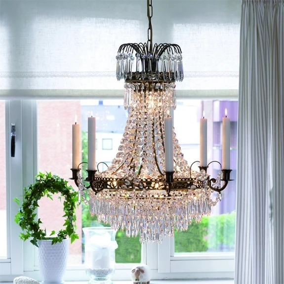 Skinnende lysekrone Läckö til levende lys overbeviser med klassisk elegance