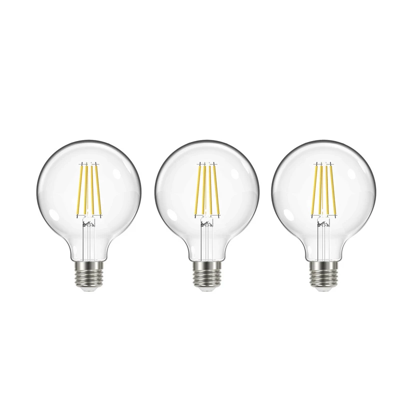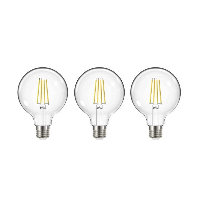LED-filamentpære, E27, G95, 3,8W, 3000K, 806lm, 3 enheder