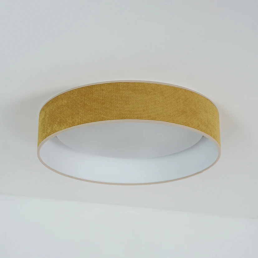 LED-loftlampe Plafond, sennepsgul, stof, Ø 45 cm, 3-trins