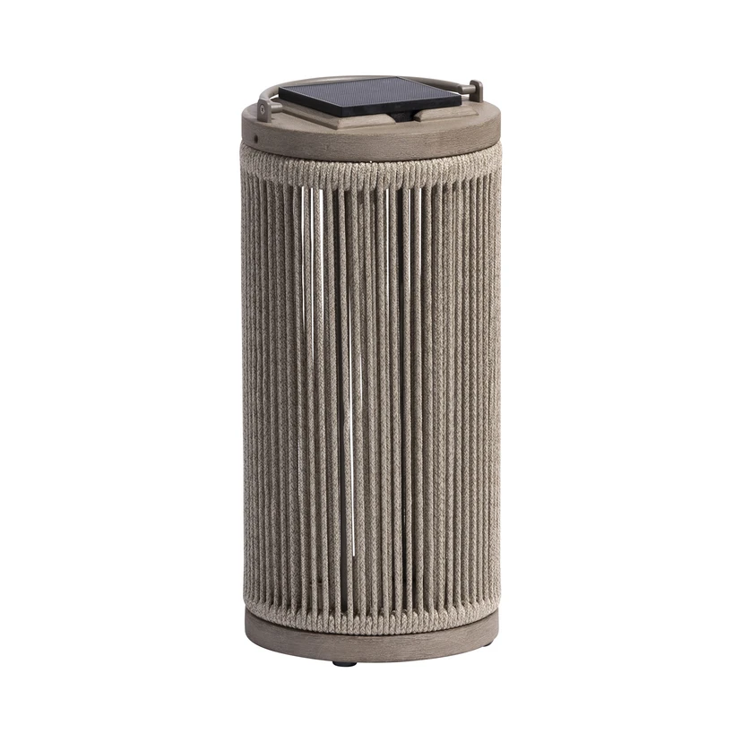 Elegant, naturligt udseende Rop&Strip LED-gulvlampe med solcellemodul Rop&Strip LED-gulvlampe med solcellemodul minder om en lanterne i sit udseende. Dens naturlige udseende understreges af farven og materialet. Det flettede reb i kombination med robust aluminium og fine teakdetaljer gør den til en tiltalende lyskilde i udendørsområder. Takket være det moderne solcellemodul kan der vælges og indstilles tre forskellige tilstande: - 1. tilstand: Parametrene strømforbrug, strømreserve og mørketid overvåges, og LED'ernes lysstyrke baseres på disse for at forblive tændt hele natten - 2. tilstand: Bevægelsessensor er tændt og lyser automatisk i skumringen, så snart den registrerer bevægelse - 3. tilstand: Lyset er tændt permanent og kan brænde i op til 5 timer, når det er fuldt opladet. Lysintensiteten kan justeres individuelt, hvilket forlænger lysets varighed til op til 200 timer. Bevægelsessensoren er slukket - Sensorrækkevidde: 6 m, detekteringsområde: 120°
