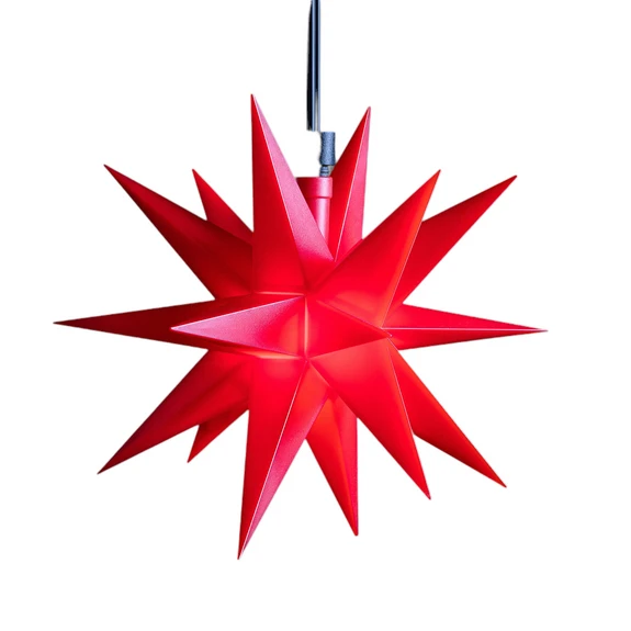 LED-stjerne, ude, 18-takket, Ø 12 cm, batteri, rød