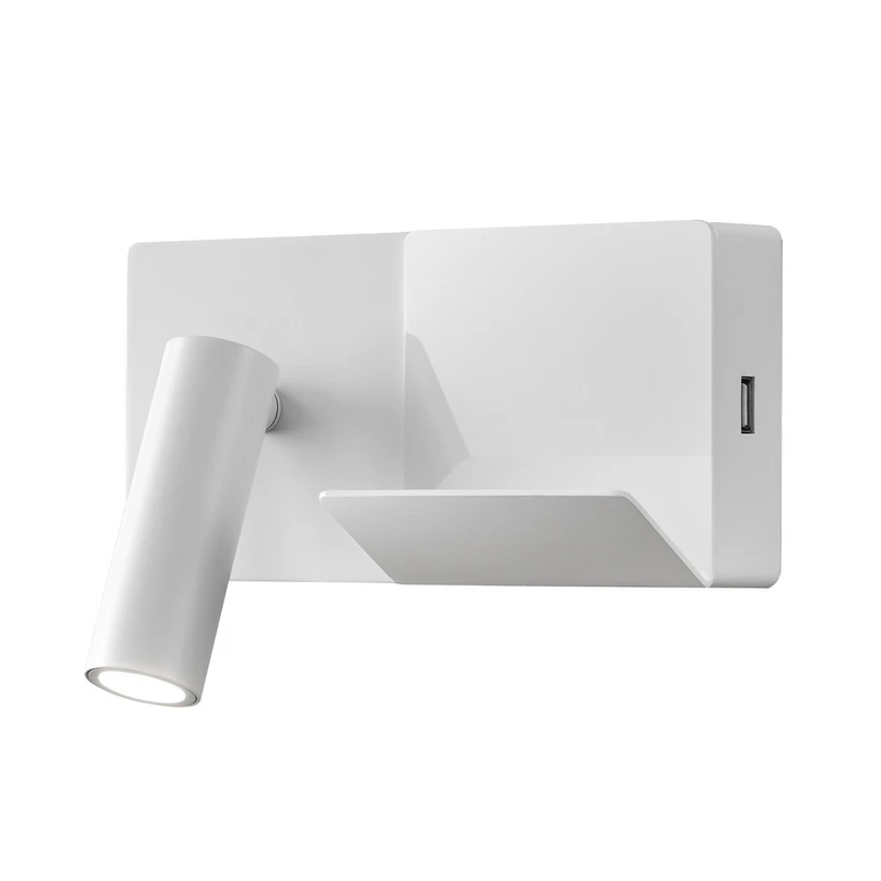 LED-væglæselampe E-Lamp Mini med hylde og USB-port