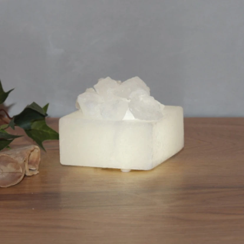 Med Petite belyst saltkrystalskål af hvidt saltkrystal kan du bringe lidt velvære og hyggeligt lys ind i dit hjem. Lampen er udstyret med en LED og en kontakt i forsyningsledningen.