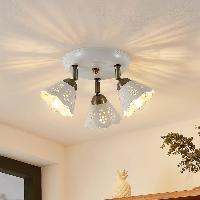 Tre-flamme loftspot spotlight Efgenia lavet af keramik og jern i et legende design