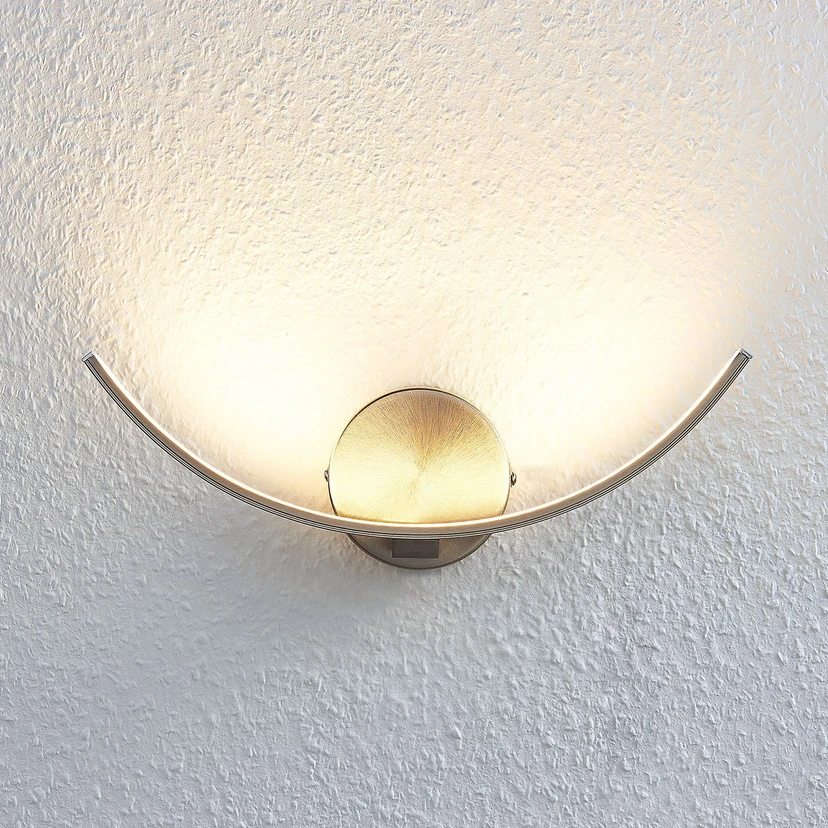 Indirekte lysende LED-væglampe Iven i en buet form Iven passer perfekt til moderne interiør og giver et rigtig hyggeligt lys, som altid er velkomment om aftenen - især når man vil trække sig tilbage og slappe af i ro og mag. Det indirekte lys med en varmhvid farvetemperatur er lige, hvad du har brug for. Lampekroppen ligner ikke en konventionel skærm, men består blot af et smalt metalelement, der er buet opad. De energieffektive LED-pærer er også placeret øverst, og derfor er de ikke direkte synlige - selvfølgelig afhængigt af monteringshøjden. Med sin nikkelfinish har LED-væglampen et særligt moderne og nutidigt look.