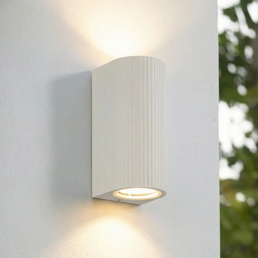 Lindby udendørs væglampe Aluvo, hvid, 16 cm, IP65, riflet