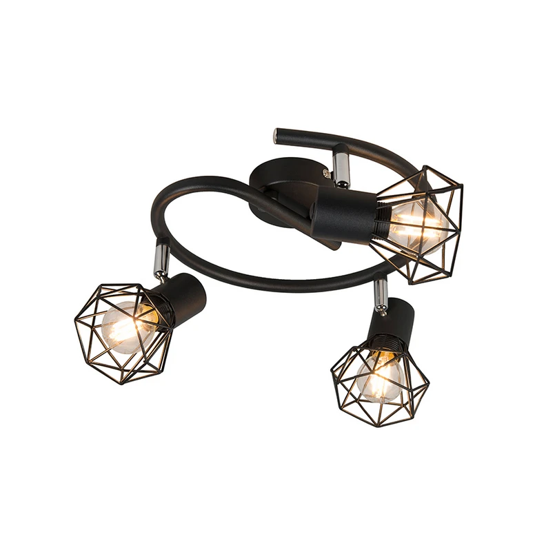 Loftlampe Mosh, spiral, 3 lyskilder, sort