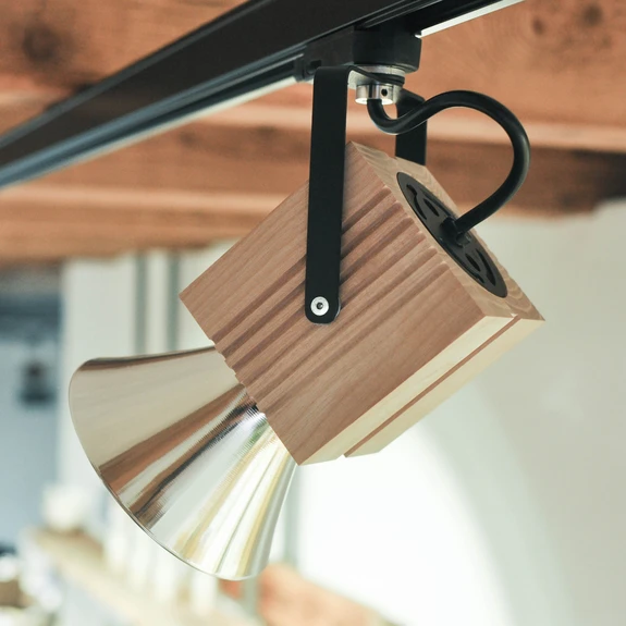 Timba LED-spotlight med trækrop til 3-fase skinne Timba LED-spotlight til et 3-fase skinnesystem er et fleksibelt og bæredygtigt skinnespotlight med en krop af asketræ, der skaber en elegant æstetik og en naturlig atmosfære i ethvert rum. Det integrerede U-beslag i aluminium gør det muligt at dreje armaturet 350° og svinge det 180°. Timba imponerer også med sin lette vedligeholdelse og det faktum, at det ikke udsender nogen UV- eller varmestråling. Varmestyring sker via den fastgjorte reflektorpære, hvilket betyder, at der ikke er behov for nogen køleplade. Den spejlende aluminiumsreflektor giver et præcist symmetrisk strålemønster, som sikrer optimal lysudbytte og blændingskontrol. Timba spotlight er udstyret med en 3-faset strømskinneadapter og et betjeningsudstyr, som gør den nem at installere og tage i brug. Med Timba spotlight kan du skabe en effektiv og stilfuld belysningsløsning i dit hjem, kontor eller forretningslokale - Strålevinkel 46 - 60° - Det anvendte træ er ubehandlet og derfor modtageligt for olie og snavs. Der kan være variationer i åretegningen.