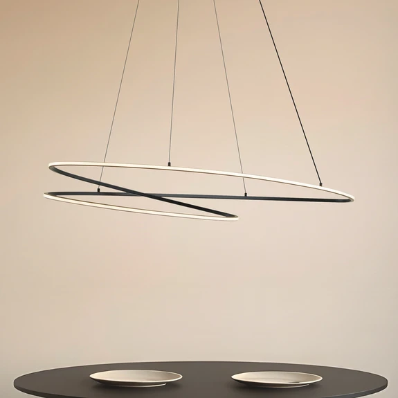 LED-hængelampen Gavril i sort kombinerer moderne design med funktionel belysning. Lampen er fremstillet af metal og silikone og passer perfekt ind i forskellige indretningsstilarter. Med en farvetemperatur på 3.000 Kelvin giver den et behageligt, varmhvidt lys, der er ideelt til stuen og spisestuen. Den integrerede LED-lyskilde garanterer en energieffektiv belysning, der bader rummet i indbydende lys.