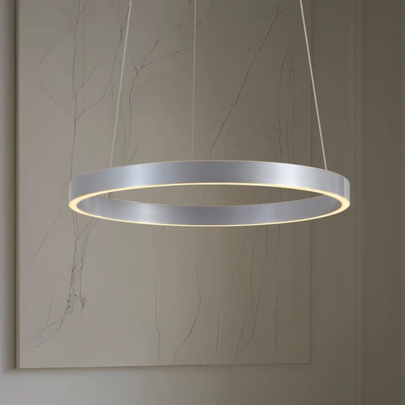 LED-hængelampen Yonam imponerer med sit moderne design og brugen af holdbare materialer som metal og silikone. Med sin elegante aluminiumsfarvede finish passer den perfekt ind i moderne stuer og spisestuer. Den integrerede LED-lyskilde sikrer en jævn belysning og tilbyder et imponerende farvetemperaturområde fra varmhvid til universalhvid. Farvetemperaturen kan indstilles individuelt i 3 trin fra varmhvid (2.700 K + 3.000 K) til universalhvid (4.000 K).