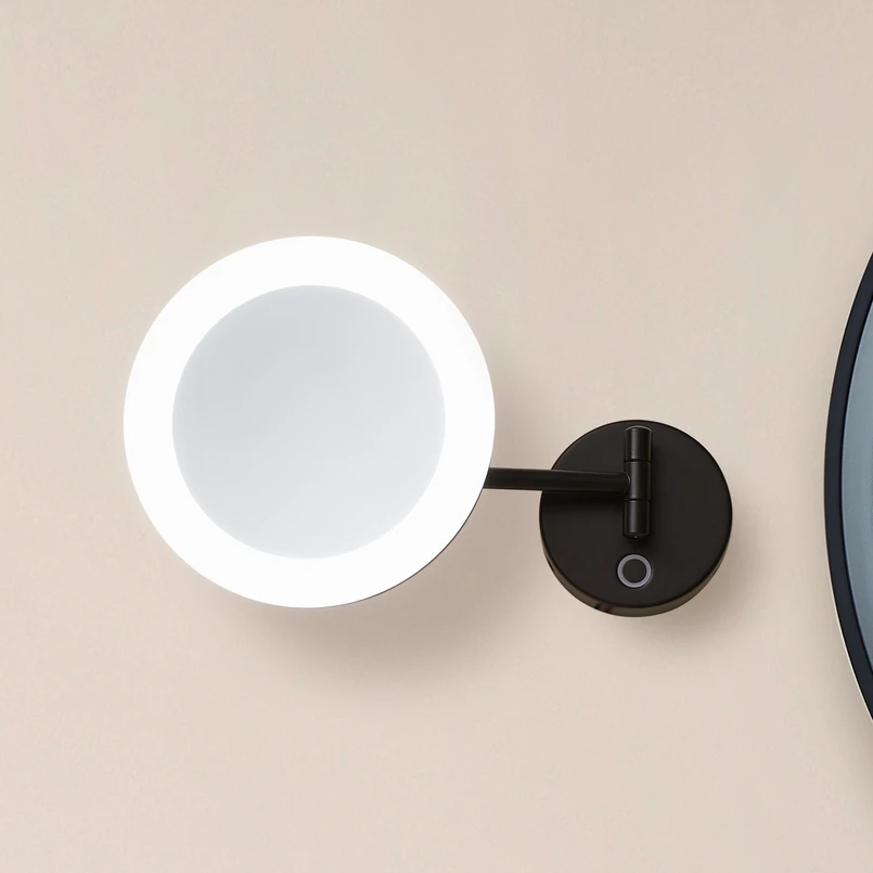 Fyria LED-spejlet er en perfekt tilføjelse til badeværelset Fyria LED-spejlet er et godt eksempel på, hvordan lys ikke kun kan forvandle et rum, men også din daglige rutine. I elegant sort passer dette spejl perfekt ind i det moderne badeværelse. Den integrerede LED-lyskilde giver ikke kun energibesparende belysning, men også CCT-funktionen, som gør det muligt at justere lysfarven efter behov - fra varme toner til en afslappende atmosfære til køligere nuancer til præcise kosmetiske anvendelser. Takket være den permanent installerede LED-teknologi er det ikke nødvendigt at skifte lyskilden, hvilket gør Fyria LED-kosmetikspejl til en langtidsholdbar og vedligeholdelsesfattig tilføjelse til ethvert badeværelse. Uanset om du gør dig klar om morgenen eller laver din hudplejerutine om aftenen, er dette LED-kosmetikspejl et uundværligt tilbehør.