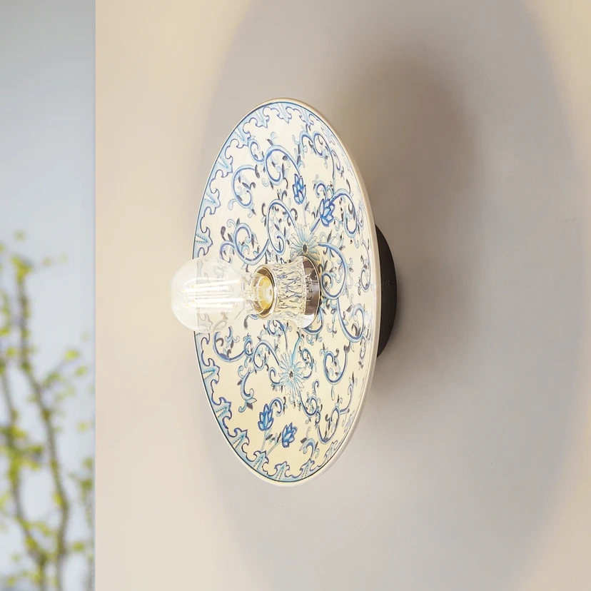 Vintagecharme møder elegance: Faelira væglampe i blå og hvid Oplev Faelira væglampen, som er en stilfuld tilføjelse til stuen, spisestuen eller gangen med sin vintagestil og tiltalende mønster i blå og hvid. Lampen er fremstillet af keramik i høj kvalitet og kombinerer traditionelt håndværk med et tidløst design. De fine detaljer i mønsteret skaber et iøjnefaldende element i loftet. Selvom der ikke medfølger en dæmper, kan lysstyrken justeres individuelt ved hjælp af en ekstern dæmper for at skabe den ønskede atmosfære. Med Faelira-væglampen kan du bringe et stykke klassisk elegance ind i dit hjem - Faelira-væglampen kan også bruges som loftlampe
