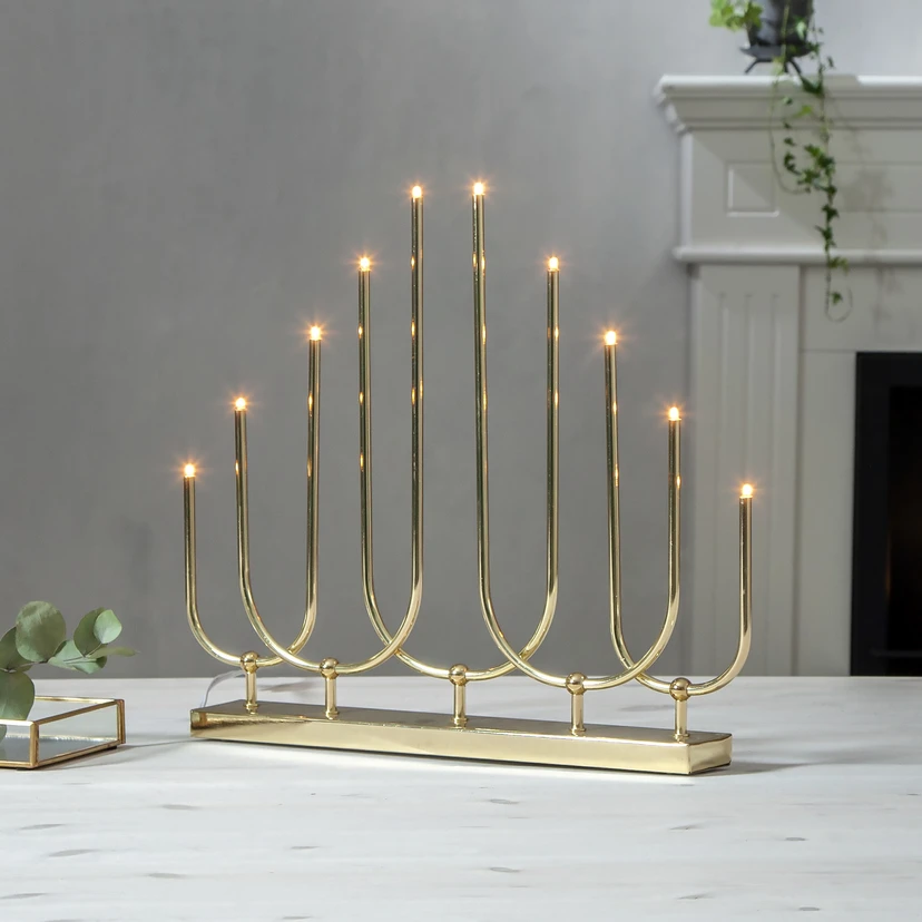 Lysestage Novum, 10 lyskilder, messingfarvet, metal, E5