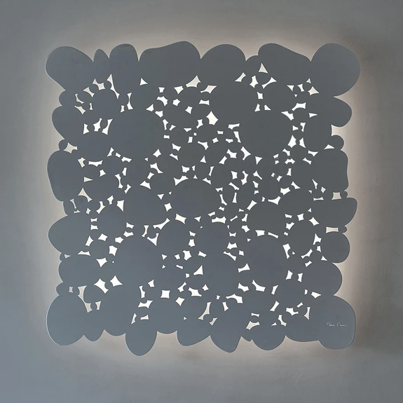 Cellule-væglampen fremstillet af det italienske firma Martinelli Luce består af en flad, hvidlakeret aluminiumsplade i en firkantet grundform, der består af adskillige runde elementer i forskellige størrelser. Designerne Donia Maaoui og Michel Boucquillon designede dette møbelelement baseret på modellen af organisk væv, der består af et stort antal individuelle celler. Lysdioderne integreret på bagsiden bag en methacrylat-diffusor lyser op ad væggen og skinner indirekte gennem de små rum i den tilsyneladende cellestruktur, hvilket skaber en tiltalende effekt af lyse og mørke sektioner.