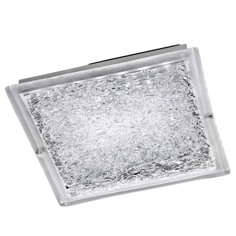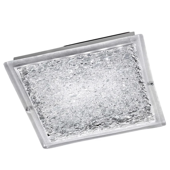 loftlampe Mary, hvis skygge udelukkende er lavet af støbt glas, er ideel til en særlig atmosfærisk rumbelysning. Imidlertid har skyggen ikke en ensartet struktur, men et ekstremt attraktivt udseende med en klar kant efterfulgt af en hvid kant. Midten er dannet af et virvar af smeltede glaskabler, der skaber en meget effektiv belysningsatmosfære.
