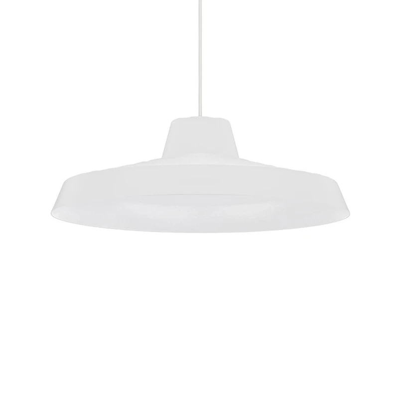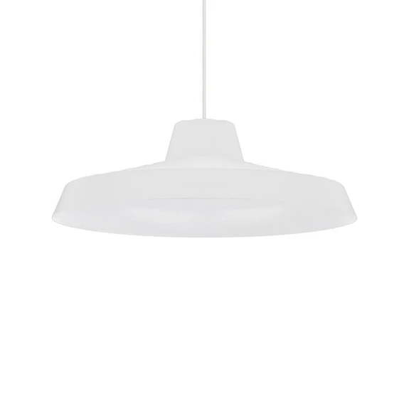 Miguel LED-hængelampe med flad, bred aluminiumsskærm Den 1 lyskilde Miguel LED-hængelampe med sin enkle, lidt industrielt udseende lampeskærm af pulverlakeret aluminium oplyser et bord eller en skranke i køkkenet eller spisestuen med varmhvidt lys. Diffusoren af UV-bestandigt polymethylmethacrylat sikrer en jævn lysfordeling.