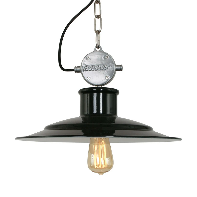 Hvis du leder efter en industriel lampe, så er pendellampen Milstone noget for dig. Dens design er inspireret af en gammel fabrikslampe, hvilket bekræftes af de smukke detaljer over lampeskærmen. Skærmen har en diameter på 40 cm og er meget åben. På oversiden har den en blank sort finish, og på undersiden er den hvidlakeret. I kombination med de matforniklede metalelementer ser dette meget dekorativt ud. Lyskilden er placeret direkte under den tallerkenformede skærm og er derfor helt synlig. Det gør det muligt for lyset at stråle jævnt i alle retninger for at sikre optimal lysfordeling. Til lampen findes særlige rustikke lyskilder, så det industrielle look kan komme til sin ret.