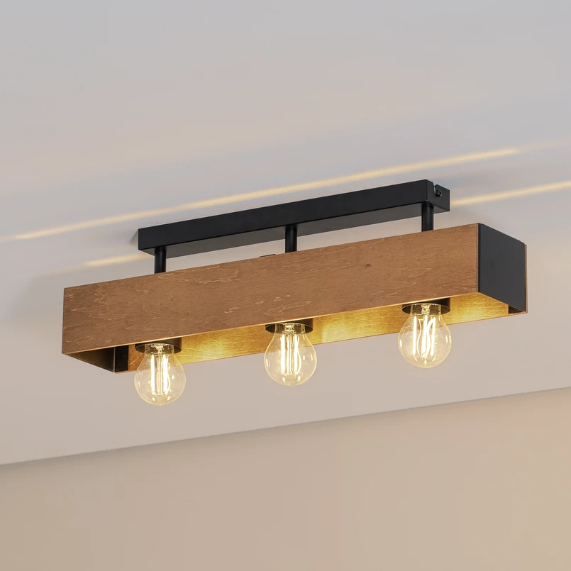 Miluza loftlampe, sort/brun, længde 57 cm, træ, 3 lyskilder.