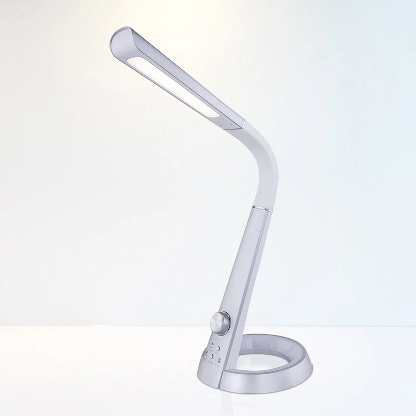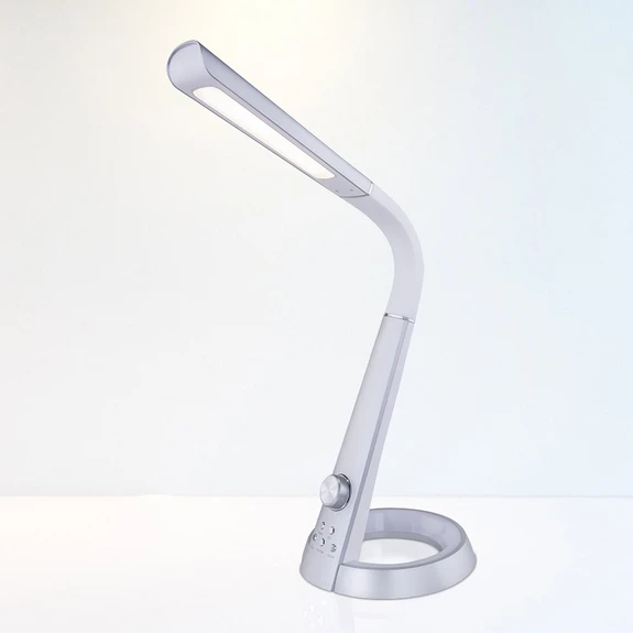 Mitti LED-bordlampe med USB-tilslutning og mange praktiske funktioner Mitti LED-bordlampen er en rigtig allrounder og er især velegnet til brug på kontoret, men er også ideel til brug på børne- eller teenageværelset. Lampen har en fleksibel arm, der kan justeres individuelt. Den integrerede dæmpningsfunktion regulerer lysstyrken, og det er også muligt at variere lysfarven fra varm hvid til dagslys hvid. I basen er der indbygget en RGB-lyskilde, som lyser op i klare farver og kan bruges som et behageligt natlys. Den integrerede USB-port er særlig praktisk og kan bruges til at oplade smartphones eller tablets med et tilhørende USB-kabel.