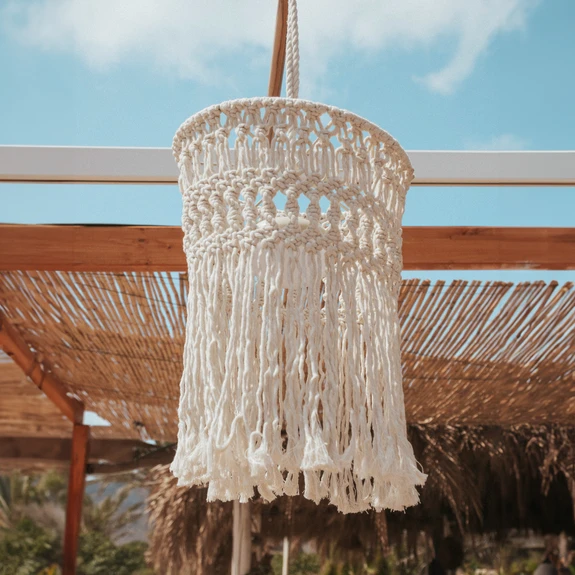 Genopladelig Mykonos LED hængelampe til udendørs brug Mykonos LED hængelampen er perfekt til terrasser, balkoner og haver. Takket være det 3 meter lange kabel kan den nemt hænges op overalt. Inden i den hæklede bomuldsskærm er der et genopladeligt batteri, som kan oplades med et USB-C-kabel (kabel medfølger, netadapter medfølger ikke). Den kan dæmmes ved hjælp af den medfølgende fjernbetjening - IP54 - Opladningstid 4-6 timer - Belysningens varighed: 20 timer