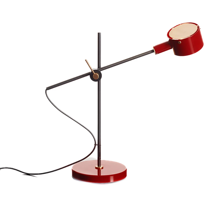 LED-bordlampe G.O. 252 af Giuseppe Ostuni, multi-justerbarBordlampen G.O. 252 er den nye udgave af en model, som Giuseppe Ostuni allerede designede for Oluce i 1960'erne. I sit design er den stadig yderst moderne, og med sine klare linjer og raffinerede detaljer samt sine mange indstillingsmuligheder er den en dekorativ lyskilde til stuen eller til skrivebordet. G.O. er en armaturfamilie, der bevarer de stilistiske træk fra det oprindelige produkt, f.eks. den cylindriske lampeskærm. Den nye udgave er dekoreret med raffinerede detaljer i satin-guld, som står i kontrast til den sorte stang og farverne på foden og lampeskærmen.Armen er et bevægeligt element takket være ledsystemet, og den kan placeres og justeres efter behov. Lampehovedet er også justerbart for altid at sikre den perfekte belysning, uanset om det er som læselampe i stuen eller som arbejdslampe på skrivebordet.
