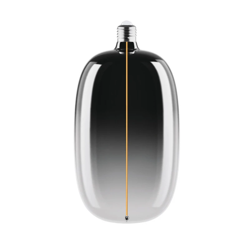 LED-pære Vintage Big Elipse Oval E27 4,8 W 1.800 K, røgfarvet grå, dæmpbar Denne pære fra Vintage Big-serien imponerer med sin store effekt i enhver fatning. Den dæmpbare LED-pære spotlighter ekstra varmt lys, er et visuelt HighLight takket være den særlige glødetrådsmagnetteknologi uden glødetrådsholder og den røggrå farvetone, der gør den perfekt til dekorative installationer.
