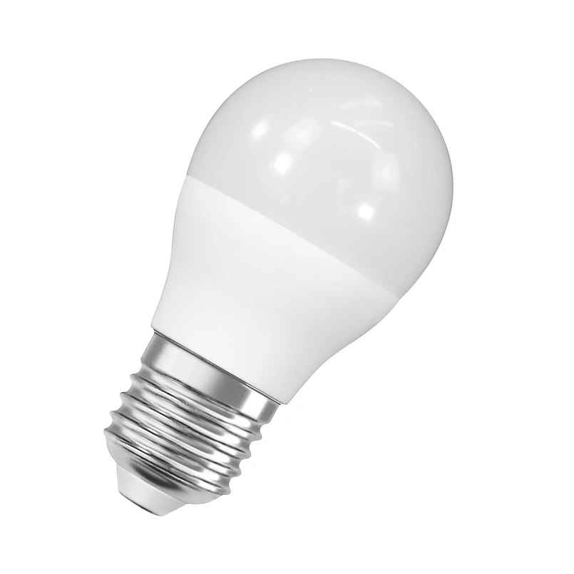 Lav blænding: E27 LED-lampe Star fra OSRAM med mat overflade, P60, 7,5 W, 6.500 K LED-lampen Star i dråbeform til E27-fatninger har et forbrug på 7,5 watt. Den giver det samme lysudbytte som en konventionel 60 W glødelampe. Den producerer dagslyshvidt lys, som er meget velegnet til madlavning, arbejde eller andre husholdningsaktiviteter. Takket være den matte hvide overflade udsendes lyset med lav blænding på samme tid. Med det høje antal 100.000 koblingscyklusser er det en pålidelig belysningsmulighed i ethvert rum - ikke-dæmpbar