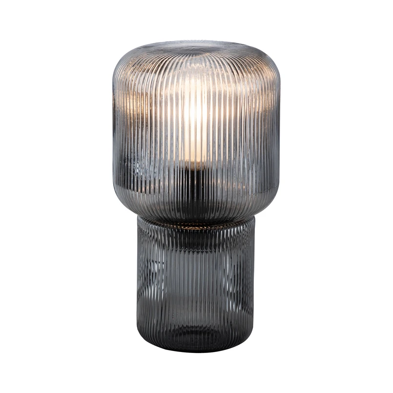 Mashi bordlampe af glas med E27-fatning Mashi bordlampen i sin naturlige svampeform er en sand fryd for øjet! Især når den er tændt, skaber det riflede glas et fortryllende spil af lys og skygge i de umiddelbare omgivelser. Bordlampen er udstyret med en E27-pære med maksimalt 10 watt. Lampen kan nemt betjenes ved hjælp af den integrerede ledningskontakt. Bring et imponerende blikfang ind i dit hjem med denne smukt designede lampe!
