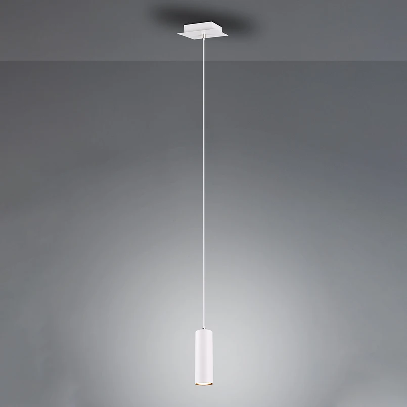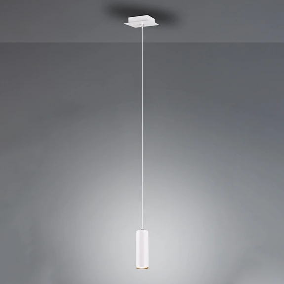 Marley - en hængelampe med et delikat design Den 1 lyskilde Marley hængelampe af metal kan f.eks. bruges til at oplyse et lille sidebord i stuen. Den har et enkelt, moderne look og passer ind i mange forskellige boligkoncepter takket være det hvide farveskema. Lyset rettes nedad fra den cylindriske lampeskærm. Flere individuelle lamper kan også kombineres for at oplyse et større bord.