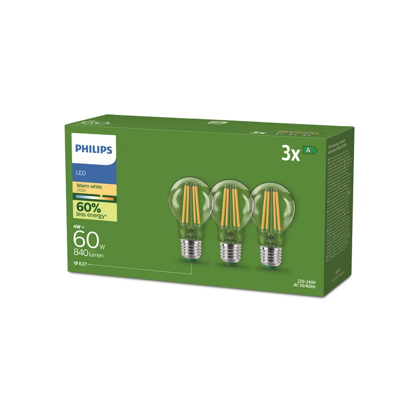 Philips E27 LED-pære A60 4W 840lm 2700K filament 3-pak
