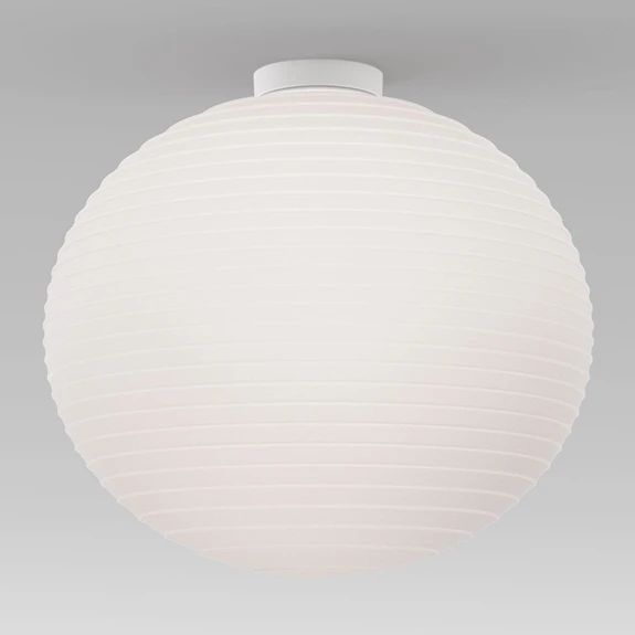 loftlampe Flow Glass repræsenterer et moderne, simpelt design. Hovedfokus her er på det håndblæste glas, der indeholder fine, koncentriske linjer som et jævnt, lige mønster. loftlampe sikrer blændfri, ensartet belysning og med en passende valgt lyskilde kan den hyggelige atmosfære forbedres yderligere ved hjælp af varmt hvidt lysfarve .