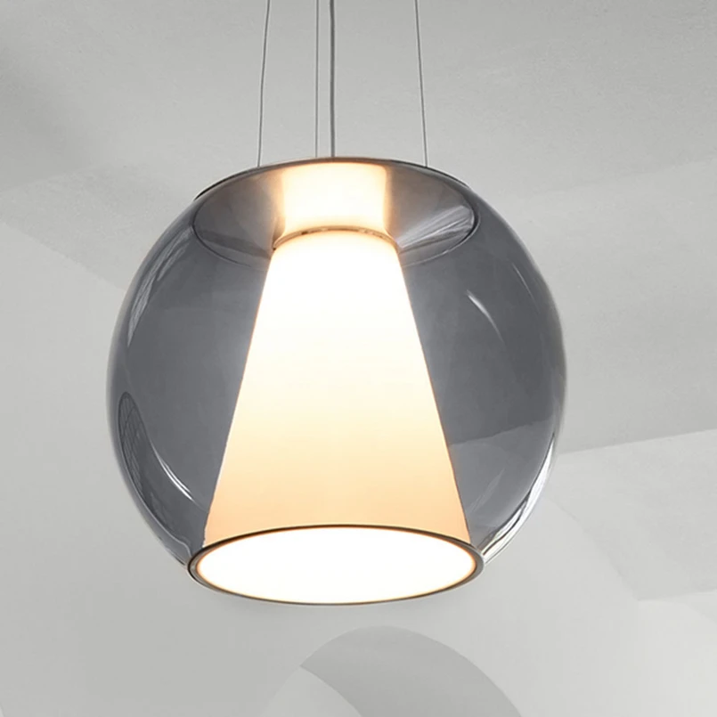 Draft LED pendelarmatur med mundblæst kugleformet skærm og opal indvendig reflektorDraft LED pendelarmaturet er et objekt af moderne præcision. Med udgangspunkt i et klassisk sfærisk armatur blev der skabt en lyskilde med en perfekt afbalanceret lyseffekt. I den mundblæste glasskærm er der placeret en konisk reflektor, hvis opale polycarbonat på den ene side danner en visuel kontrast til det gennemsigtige glas og på den anden side har afgørende indflydelse på lyseffekten. På denne måde opnås der en blød, diffus belysning hele vejen rundt. Et bord nedenfor er f.eks. forsynet med direkte lys, og et diffusorpanel giver også en ensartet lysdiffusion. LED'erne, der er integreret i armaturet med det skinnende aluminiumshus, sikrer, at farverne i omgivelserne gengives meget godt. Stålkabelophænget kan justeres uden værktøj, og LED-enheden kan udskiftes takket være et patenteret system.Draft-serien er designet af Jean-Marc da Costa, medstifter af serien.lighting. Den tyskbaserede virksomhed udvikler og producerer intelligente belysningsløsninger med et reduceret moderne design og en sofistikeret konstruktion for at optimere lyseffekten.- Eksternt dæmpbar (TRIAC)