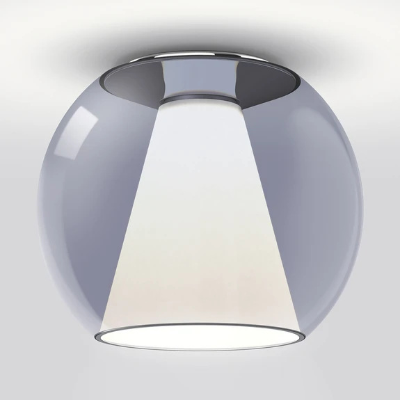 Draft LED loftslampe med mundblæst glaskugle og opal indre reflektorMed Draft LED loftslampen bliver det arketypiske kugleformede armatur til et objekt med moderne præcision og perfekt afbalanceret lyseffekt. Kuglen af gennemsigtigt, mundblæst glas og den lysdiffuserende, opale indre reflektor skaber en spændende kontrast. LED-lyskilden er placeret dybt inde i den koniske indre reflektor og giver et blødt diffust omgivende lys hele vejen rundt samt et direkte direkte lys nedad. En diffusorskive i den nederste ende sikrer en særlig blød lysafgivelse og ensartet belyste overflader. Fremragende farvegengivelse og dæmpning af belysningen med en ekstern lysdæmper (TRIAC) er yderligere egenskaber ved Draft LED-loftarmaturet. I private områder eller i en bred vifte af kommercielle objekter, enkeltvis eller samlet i flere armaturer - Draft LED-loftarmaturet kombinerer en moderne fortolkning af tidløse former med avanceret teknologi.Draft er et design af Jean-Marc da Costa, medstifter af serien.lighting. Den tyske virksomhed udvikler og producerer intelligente belysningsløsninger i et moderne design og med avanceret teknologi.