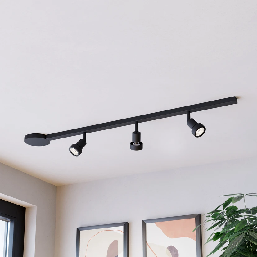 Skinnesættet EASY TRACK i sort forener moderne design med funktionel alsidighed. Det er fremstillet af højkvalitetsaluminium og robust plast og tilbyder en holdbar og stilfuld løsning til belysning i forskellige bolig- og arbejdsområder. De tre GU10-spots kan justeres individuelt for at sætte målrettede lysakcenter og belyse rummet optimalt.