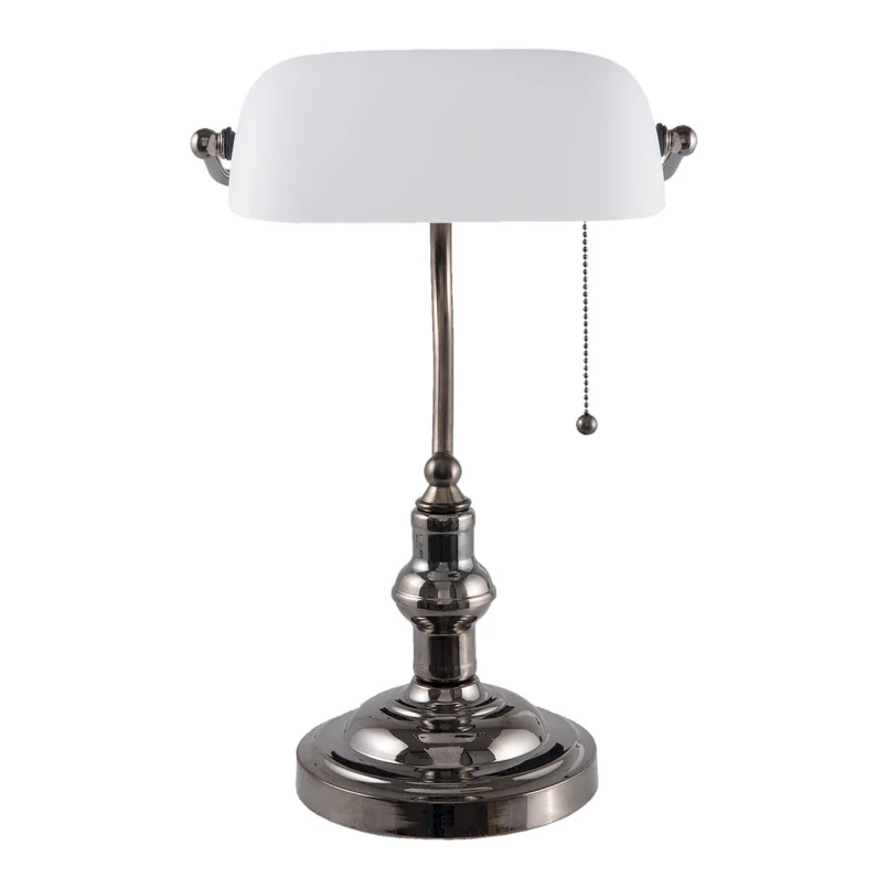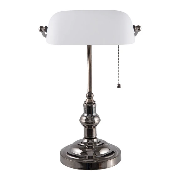 Æstetisk designet skrivebordslampe 5LL-5100WDTDen typiske Tiffany-stil er blevet realiseret i designet af denne skrivebordslampe på en relativt enkel måde. Den hvide skærm er betagende med den klassiske form af den såkaldte bankmandslampe. Denne lampe garanterer blændfrit lys, hvilket er ideelt til skrivebordsarbejde. Men denne smukke lyskilde ser også meget dekorativ ud alle andre steder i hjemmet.