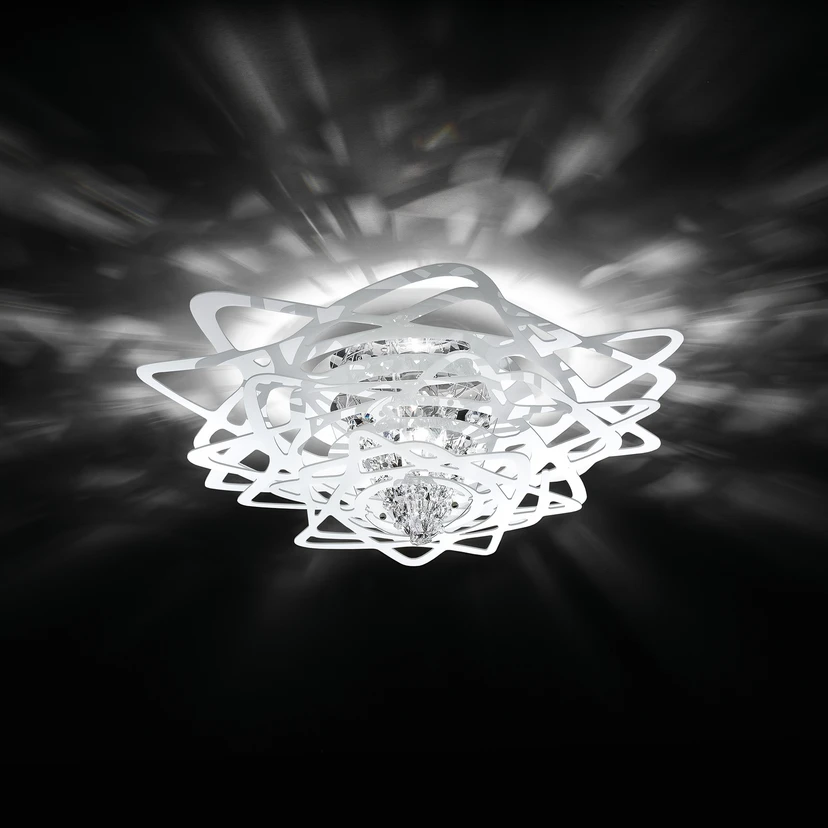 Skinnende designer loftslampe Aurora lavet af Plainflex® og krystaller