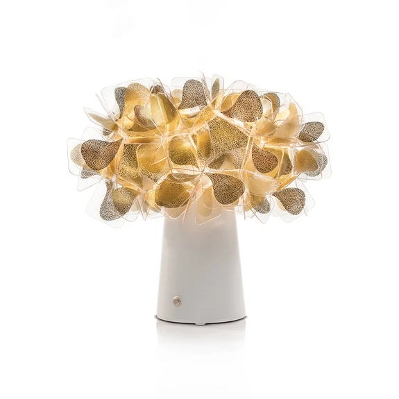 Clizia Mama Non Mama LED-bordlampe med batteridrift og touch-dæmper Clizia Mama Non Mama-bordlampen er en stemningsfuld ekstra lyskilde til indendørs brug, hvad enten det er i stuen, soveværelset eller på spisebordet. Takket være det genopladelige batteri kan LED-bordlampen bruges på farten, og med lysdæmperen på foden kan du justere lysstyrken, så den passer til stedet og anledningen. Den karakteristiske skærm i Clizia-armaturserien af den italienske designer Adriano Rachele er kendetegnet ved sine gennemskinnelige blade, hvis specielle plast er udviklet af armaturproducenten Slamp. Den kegleformede polykarbonatbase er fastgjort til en metalbase ved hjælp af en magnetisk holder - Opladningskabel medfølger - Driftstid pr. batteriopladning 6,5 til 60 timer (afhængigt af lysstyrke)