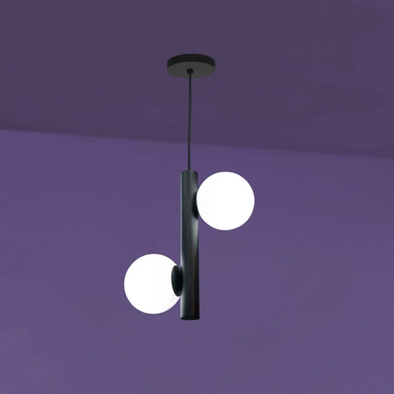 Tin-Tin ophængslampen er et imponerende syn. Ophængsstangen er udstyret med to sfæriske nuancer lavet af glas, der har en E14- fatning . På denne måde kan en blød, jævn glød garanteres, der passer godt til en hyggelig atmosfære. Som tabel belysning, den pendellampe med sine to-flamme Design tilbyder et godt distribueret lysudbytte.