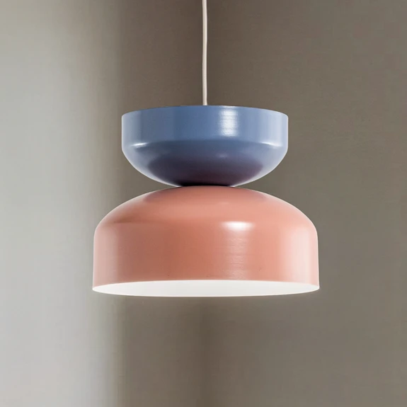 Tula hængelampe: moderne design til spisestuen Tula hængelampen i koral og blå sætter stilfulde accenter i spisestuen og skaber en atmosfære, der indbyder til både at nyde og dvæle. Med sit moderne design passer den problemfrit ind i moderne indretningskoncepter og bliver et blikfang over ethvert spisebord. Lampen er designet til brug med en ekstern dæmper, så lysintensiteten kan justeres individuelt for at skabe den rette stemning til enhver situation - fra lyst og klart til hverdagssituationer til blødt og dæmpet til afslappende timer. (Bemærk, at en passende dæmper skal købes separat)