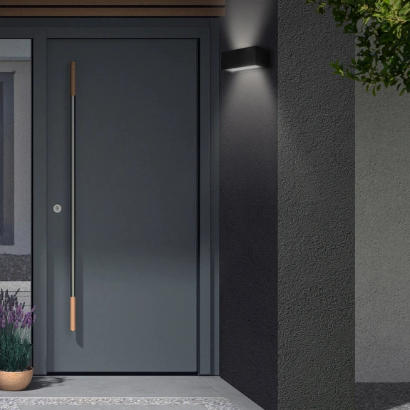Kubisk op- og nedadrettet udendørs væglampe Monaco med hvidt universallys Med et opadrettet og et nedadrettet LED-modul giver den udendørs væglampe Monaco effektiv belysning af en tilstødende gangsti og facaden ovenover på samme tid. Den kubiske krop er lavet af metal med klare glasdæksler - Beskyttelsesklasse: IP44