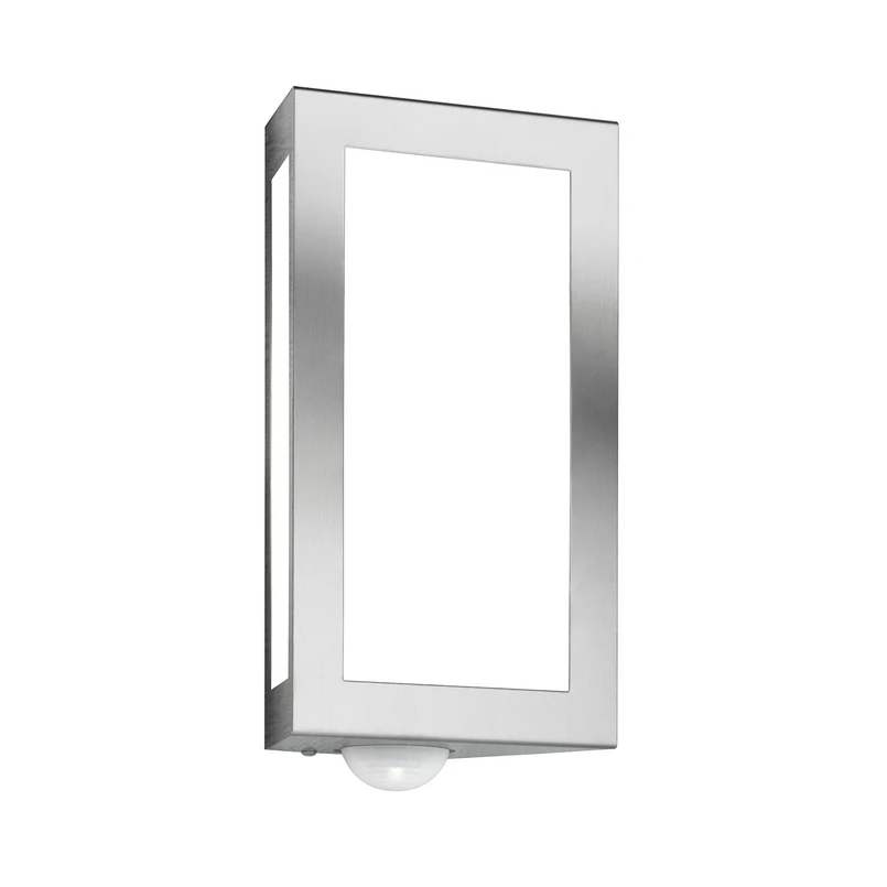 Kvadratisk udendørs væglampe Long i børstet stål med bevægelsessensor