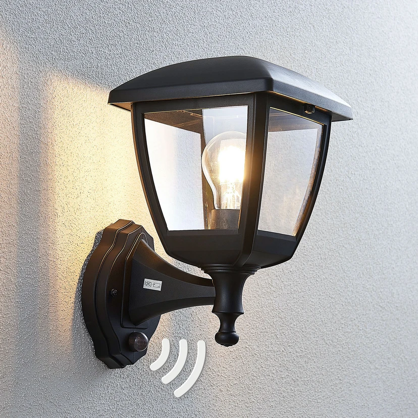 Sort udendørs væglanterne Acelya med klar plastindsats og lanterneformet design