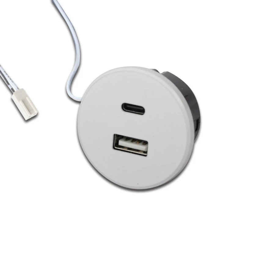 USB-A stikkontakt + USB-C, hvid, møbelinstallation, 24V indgang, 20W
