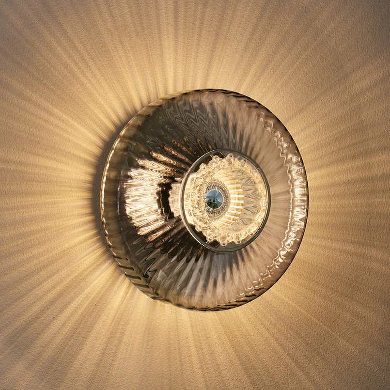 Øjeindsats medfølger: New Wave Optic XL-væglampe i bølget, mundblæst glas med stik New Wave Optic XL-væglampen er et ikonisk smykke til ethvert hjem. Den kaster et smukt lys på væggen takket være det bølgede, mundblæste glas. Den er også udstyret med stik og afbryder (tænd/sluk) på kablet, så der ikke er behov for vægtilslutning. New Wave Optic XL afrundes af øjeæbleindsatsen, som allerede er inkluderet i denne serie og er meget nem at indsætte. Stikket til en E27-lyskilde (medfølger ikke) er placeret i midten af armaturet. Til versionerne i røggrå, hvid og med klart glas anbefales en lyskilde med en sølvreflektor (se tilbehør). Til de rosa og ravfarvede versioner bør man derimod vælge en lyskilde med guldfarvet reflektor. Den fås også separat som tilbehør, uanset hvilken farvekombination du vælger: New Wave Optic XL er et universelt blikfang i dine egne fire vægge og er også forudbestemt som et ægte designobjekt til brug i hotel- og restaurationsbranchen. Bemærk: Leveres uden den viste lyskilde, se tilbehør.