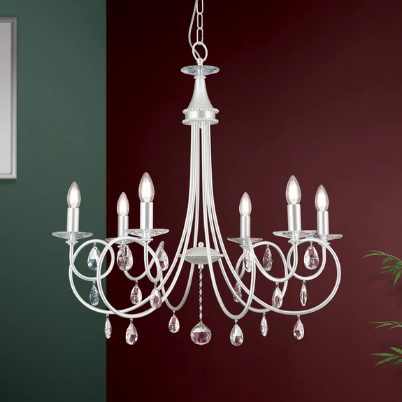 VIOLETTA lysekrone med seks lys med Spektra Swarovski-blykrystalvedhæng i mat sølv
